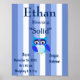 Med namn menas ett kvarvarande daghem, som är helt anpassat med namn och text. Din baby eller dina barn namn betyder att du är en förskolsdeka med födelsedatum. Den här designen har en söt blå illustration av uggla och en blå bakgrund av rand. Meningen är för namn Ethan, men du kan få fullständig anpassningsbar med ditt barns namn och information.