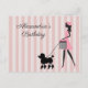 Anpassa och lägg till namn och händelse eller tillfälle till denna design av en vintage dam helt klädd i rosa som går med en söt svart pudel