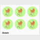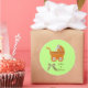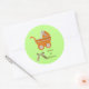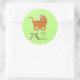 Handskuren orange baby med vit bog och vitt band, limmade vita knappar på hjul och vacker vit och ljust grönt buk och vacker ljusbryggbakgrund för babydusch för pojke på Classic Round Sticker, Glossy. *Varje sak som du ser på produkterna tillverkas för hand, men du måste veta att du får ett foto!