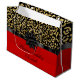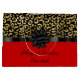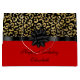 Anpassa den här presentsäcken för elegant och chic med tillfälle och hennes namn. Utformningen är ett svart och guld leopard med en svart båge som skiljer leopardutskriften från det röda grund.