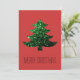 Anpassade Vackert trendig Julgran med grönt gnistor. Du kan anpassa den röda inbjudan färg och text. Foto av miniatyrdiagram är inte glitter.