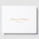 anpassa text för klassisk elegant Bröllop Guest Bok guld brev, vit bakgrund