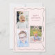 Det här charmiga anpassningsbara julfoto-collagekortet har en minimal vågig snirklig fotoram mall med rosa slinga och vinröd rand på baksidan. Visa dina tre favorit familjefoton och lägg till elegans och värme till dina julhälsningar.