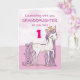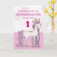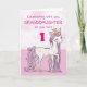 En söt rosa ponny precis som din barnbarnsbarn hoppar runt med nummer ett! Gyldne detaljer är invävda i hennes man och svans. Perfekt kort för att önska ditt barnbarn en lycklig födelsedag!