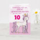 En söt rosa ponny precis som din gammaldags dotterdotter hoppar runt med siffran tio! Gyldne detaljer är invävda i hennes man och svans. Perfekt kort för att önska din gammaldags dotterdotter på födelsedagen!