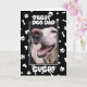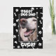 En personlig fadersdags hälsningskort för hundpappor! Detta kort har ett personligt foto av din lurviga vän tillsammans med en lekfull ram av tassavtryck, hundben och hjärtan. Designen firar perfekt bandet mellan pappor och deras fyrbenta barn. Du kan också anpassa texten i kortet för att göra det unikt för din pappa från hans favorit lurviga bebis. Ge den bästa hundpappan någonsin en fadersdag han aldrig kommer att glömma. (Ändra några ord och det här kortet passar perfekt till födelsedagar också!)
