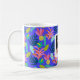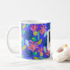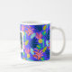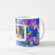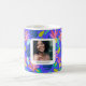 Anpassad blå blommig moder kärlek kaffe te foto Mugg. Modern färgrik söt och feminin mugg med fotografi. Söt tropisk mönster mugg med blommor, ananas, kaktus, växter, blommor, blad. Blå , rosa, gul, grön mugg färger. Gåva idé för kvinnor, mödrar, vänner, fruar för mors födelsedagar, mors dag. Lägg till text , meddelande och ditt eget foto.