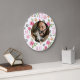 Håll koll på tiden medan du håller din favoritkatt nära hjärtat. Denna vackra personliga väggklocka är det ultimata statementet för alla kattälskares hem. Med en delikat akvarellros och ett mönster av tassavtryck smälter den elegant heminredning samman med en personlig och kärleksfull touch.
