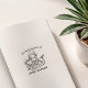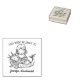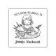 Denna gummistämpel för böcker visar en flicka som läser för en baby-drake med ett anpassat namn.