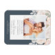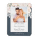 Meddela om din speciella dag med denna magnet för "spara datum" för bröllop, med en elegant fotomall prydd med botaniska blush-rosa blommor och en subtil ljusblå-grå design. Perfekt för att visa upp ert förlovningsfoto, kombinerar denna design enkla minimalistiska element med minimalistisk typografi för en touch av klassisk elegans. Den minimala traditionella stilen förstärks med en tidlös fotografiram, vilket gör den till en sofistikerad souvenir för era gäster.