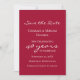 Anpassa denna moderna, stilrena röda bröllopsjubileum-inbjudan. Denna mall för inbjudan till 40-års bröllopsjubileum-fest är redo för att du ska kunna lägga till parets namn och datum för bröllopsjubileum-fest, lokalens adress och detaljer, och annan information vid behov. All text är redigerbar. Det finns också ytterligare textmall på baksidan om det behövs. Detta enkla, sofistikerade röda kort har enkel, elegant vit text som säger "celebrerar 40 år" som kan redigeras till vilket nummer som helst för ett annat jubileumsår. Anpassa detta "save the date"-kort för bröllopsjubileum för en underbar bröllopsjubileumsfest.