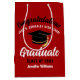 Denna moderna röda och vita anpassade påse för senior examen har klassisk vit typografi med namnet på din gymnasieskola eller högskola för avgångsklassen 2026. Anpassa med ditt examensår under den chic svarta handskrivna stilen och svarta examenshatten för personliga och fina examenspresenter.
