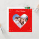 Söt modern anpassad familjehjärta och snöflingor på röd julhälsningskort. Text redo att anpassas. Foto kan anpassas,