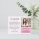 Det här anpassade tacksändkortet för fastighetsmäklare är det perfekta sättet för fastighetsproffs att uttrycka sin tacksamhet gentemot kunder samtidigt som de lämnar ett bestående intryck. Med en mjuk pastelljusrosa bakgrund utstrålar detta vykort elegans och värme, vilket gör det idealiskt för ett personligt men professionellt meddelande. Det kommer med en fördesignad tackmeddelandemall som enkelt kan anpassas för att passa din ton och stil. Vykortet har också ett dedikerat utrymme för en agentfotomall, så att du kan visa upp din vänliga och professionella image och stärka din relation med kunderna. Dessutom är en QR-kodmall integrerad i designen, vilket möjliggör sömlös åtkomst till din webbplats, sociala medier eller recensioner och bidrar till att upprätthålla eng
