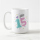 Fira en ung flickas födelsedagsfirande med stil med denna söta anpassningsbara kaffekopp ”Fifteen and Fabulous”. Med en fantasifull blåfågel som kvittrar ut frasen ”Fifteen and Fabulous”, sprudlar denna lekfulla design av personlighet. Ett stort prickmönster och hjärtmönster med siffran 15, färgglad konfetti och retroinspirerad text ger designen en rolig och ungdomlig känsla som är perfekt som gåva på 15-årsdagen. Lägg till ett namn och en egen hälsning för att skapa en unik souvenir som alla unga flickor kommer att värdesätta.