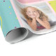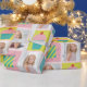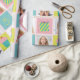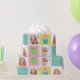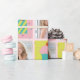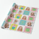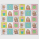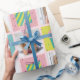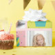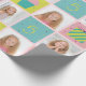 Tvätt anpassade som omsluter pappert med upp till tre foton och födelsedag. Färgfull rosa, blått, gult och lila konfektion, illustrationer av presenter och polka dots.
