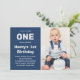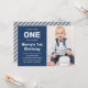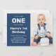 Anpassad Foto Blå Grå | Pojke 1-årsdag Inbjudningar