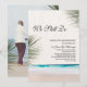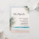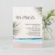 Anpassad Foto Strandtema Löfteförnyelse Inbjudan har en akvarell-målad havsstrandscen, palmlöv och textmall. Baksidan av kortet har en fotomall. En perfekt design som passar temat som strand, tropisk, kust, destination, rustik eller sommar. Klicka på knappen "personifiera" för att anpassa den med din text och foto. Besök min butik "loveyouart" för andra eller liknande designer.