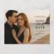 Letar du efter ett stilfullt sätt att tillkännage din bröllop? Detta anpassningsbara fotospårkort för "spara datumet" låter dig ladda upp ditt favoritfotografi från förlovningen samtidigt som designen hålls polerad och modern. Den eleganta typplaceringen passar mörka kläder och strandmiljöer, och baksidan visar upp ett tidlöst blå chinoiserie-mönster för en klassisk finish. Perfekt för bröllop vid kusten, moderna par eller någon som vill ha en förfinad och personlig touch.