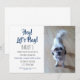 Fira din älskliga hunds födelsedag med denna anpassade födelsedagsinbjudan. Den inledande texten är "Hej! Låt oss leka!" i ett roligt blått typsnitt. Anpassad text inkluderar ditt husdjurs namn, datum, plats och RSVP-information. Inkludera ett foto av ditt husdjur och du är redo!