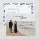 Letar du efter ett stilfullt sätt att tillkännage din brölloppsdag? Detta anpassningsbara fotobrevkort med förhandsbesked låter dig ladda upp ditt favoritfotografi från förlovningen samtidigt som designen hålls polerad och modern. Den eleganta typplaceringen passar utmärkt till mörkare kläder och strandmiljöer, och baksidan visar upp ett tidlöst chinoiserie-blått mönster för en klassisk finish. Perfekt för kustbröllop, moderna par eller alla som vill ha en förfinad och personlig touch.