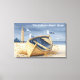 Klassisk kustnära duk med en väderbiten gyllene roddbåt som vilar på en sandstrand. Med en fyr och glada måsar fångar detta konstverk den fridfullhet som kännetecknar livet vid havet.