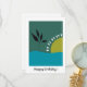 Anpassad abstrakt minimalistisk glad 30-årsdagskort. Lägg till text, namn eller personligt meddelande. Färgglatt landskap med hav och sol, berg, träd för unga kvinnor, vänner, millennials, vuxna, fruar, mödrar, lärare, studenter som älskar boho-konst, trendig illustration, livfulla ljusa färger. Färgglatt modernt blått och grönt formspråk för detta födelsedagskort.