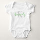 Enkel barn klänning med grönt barnets namn och grå initial. Söt gåva till den nya mamman och pappan.