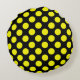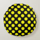 Försköna och gör ditt hem personligt med kuddar som förkroppsligar färg och stil. Denna klassiska runda kudde ger komfort och en avslappnad känsla till ditt hem och kan användas på en säng, stol eller soffa. Denna prickiga kudde har gula prickar mot en svart bakgrund. Anpassa den genom att välja en annan bakgrundsfärg.