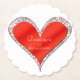 Rött hjärta med vit snöre-design. Anpassa med egen text.