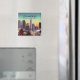 Färgfull vektorillustration med en varm solnedgång med högriser och handflatan träd från Los Angeles, Kalifornien.
