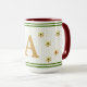 Stilfull och unik. Denna anpassningsbara monogrammugg har en "initialbokstav" i en platt falsk guld färg, mot en bikakemönstrad bakgrund och gyllene blomsterelement. Anpassa denna mugg med handtag och innensidor i färger som passar dina önskemål. Denna kollektion låter dig anpassa monogrammet/ initialbokstaven. Denna snygga och trendiga mugg är en fin present med en personlig touch. TIP: Om du använder Zazzles egna designverktyg kan du anpassa färgen på bokstaven om du föredrar det.