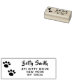 Kattfotsavtryck anpassad returadress gummistämpel för en kattmamma, kattägare och alla djurälskare. Dekorerad med ett par stiliserade tassavtryck och i kombination med ett vackert namn i kursiv stil med en fin adressutskrift. Visa din kärlek till katter och försköna din korrespondens med denna roliga personliga tassavtryck returadress gummistämpel.