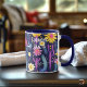 Förgyll din dag med denna anpassade konstnärliga mugg med en livfull kaktus och blomsterdesign mot en djupblå bakgrund. Perfekt för välbefinnande-företag, denna personliga mugg tillför en touch av färg och serenitet till din dagliga rutin. Idealisk som en unik promotionsprodukt eller en genomtänkt present, denna mugg för med sig en blandning av naturinspirerad skönhet och lugn till alla miljöer.
