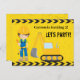 Cool anpassad konstruktionsfordons inbjudan till födelsedagsfest för barn som älskar konstruktionsfordon i svart och gult. Rolig barnpostkortsinbjudan för en liten pojke som älskar grävmaskiner, liksom bilar och lastbilar. Anpassa med din barns festinformation på baksidan.