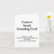 Anpassningsbar gratulationskort, personlig mall för gratulationskort - litet kort i storleken 4" x 5,6" (porträtt) - visa ett familjefoto, en festlig eller aktuell scen, ett mönster eller motiv, din monogram eller favorit säsongs- eller firandeord - den perfekta gratulationskortet att skicka är ett personligt kort - för foto, bild, text eller din egen anpassade design. Anpassa alla delar av detta vikta kort - inuti och utanpå, fram och bak - helt gratis! Alla kort trycks på ultrahög vikt (120 g) kartong med glansfinish. Varje kort kommer med ett vitt kuvert. FLERBESTÄLLNING RABATT PRODUKT! RABATT PÅ LITEN NOTERINGSKORT STORLEK ANPASSNINGSKORT: 10 kort. (Spara $0,30