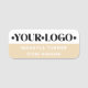 Detta stilrena beige namnskylt för anställda med logotyp är lätt att anpassa med din logotyp, namn och jobbtitel. Det finns ett alternativ med magnetiskt fäste.