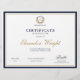 Erkänn prestation med ett anpassat uppskattningscertifikat med raffinerad marinblå och gul kantdesign. Denna eleganta certifikatmall är helt anpassningsbar, så att du kan lägga till ditt företags logotyp, mottagarens namn, signatur och evenemangsuppgifter för en polerad och professionell presentation.