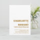 Bjud in dina vänner och nära och kära med denna stilrena minimalistiska vita bröllopsinbjudan med guldbokstäver där du på baksidan kan dela ut ditt glädjeämne med ett foto av det nygifta paret. För bästa resultat, beskära din valda bild till en 5 x 7 ratio så att den passar på baksidan av inbjudan.