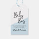 Personalisera dessa presenttaggar för en blåtematiserad baby shower för pojke. Modern diagonal form och typsnitt. Anpassa hälsningen och namnet, gläd den blivande mamman på hennes baby shower-dag.
