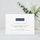 Sleek, chic och modern, dessa ultramoderna infogningskort för bröllopsreceptionen har "Reception" placerat på ett rektangulärt element som kan anpassas med ett knapptryck för att matcha din bröllopsfärg. Lägg till din receptioninformation, som tid, lokal och adress, och justera sedan färgen efter dina önskemål med hjälp av de enkla instruktionerna nedan. Baksidan av korten har ett valfritt modernt grekiskt nyckel-mönster. Visas i klassisk marinblå och vit.