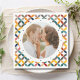 Anpassade moderna färgglada personliga pappersfestservetter med foto har ett färgglatt modernt geometriskt mönster med ditt favoritfoto i mitten. FOTOTIPS: centrera ditt foto innan du laddar upp till Zazzle. Designad av Evco Studio www.zazzle.com/store/evcostudio