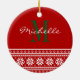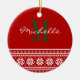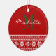 Anpassad personlig rund julgransprydnad med monogram för vänner, familj, kollegor, lärare, anställda, förlovade par, nygifta, make och hustru, brud och brudgum etc. Elegant typsnittmall för namnmonogram. Söt personlig vinterpresentidé för henne och honom. Klassiska röda och gröna dubbelsidiga julprydnader med nordiskt "ful jultröja" snöflagemönster. Lägg till namn på båda sidor. Ändra kvantitet för att få det låga bulkpriset. Inkluderar gnistrande guldsnöre.
