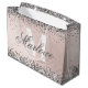 Elegant silverglitter och rosa monogrampresentpåse med anpassningsbart kalligrafiskriptnamn och fet monogrammall.