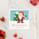 Den här personifierbara och festila pappra napkin har Desteis tecknad som illustrerar ett lycklig Jultomten som är klädt i traditionella rödsvarta kläder. Tomten har ett långt vitt skägg och han håller handen uppe för att säga hej. Bakom tomten finns en grönt träd täckt i snö. Bakgrunden till färg är blå med fallande snö mönster. Under bilden står t.ex. "God jul" i rött färg tillsammans med ett anpassat textområde för en familj namn.