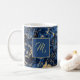 Elegant Blue och Guld Marble Custom Name Coffee Mugg