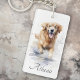 Nyckelring med en vacker vattenfärgsmålning av en Golden-hämtare som går genom vatten och anpassade, t.ex. ett namn.