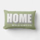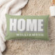 Personlig minimalistisk ländryggskudde med familjenamnet till exempel och fet hemmacitat-typografi, med cool skuggeffekt. Mjuk modern lugn pastellgrön salvia-bakgrund, vit och grå för den sans-serif-texten, lätt att matcha i alla miljöer. Premiumutseende, skandinavisk enkel chic för din heminredning eller som en kreativ present till nygifta, nyligen förlovade par, eller som husvärmegåva, eller present till nya husägare. Bra idé till personlig gåva under 50 dollar. Även utmärkt föremål att använda när man visar upp ett hus för försäljning, som mysig bekväm elegant dekoration för att göra hemmet mer attraktivt och inbjudande. Naturlig sofistikerad tidlös vardagsrums-, sovrums- eller hemmakontorsdekoration.