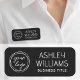 Skapa din egen professionella namnskylt. Denna redigerbara mall har en minimalistisk estetik och modern typografi. Ladda upp din företagslogotyp och anpassa texten med namn och jobbtitel. Denna anpassade namnbricka är lämplig för identifiering på arbetsplatsen, kundorienterade roller, säkerhet, nätverkande, konferenser och alla roller som kräver synlig ID. Den erbjuder helt anpassningsbar text för att passa ditt företags varumärke och är idealisk för en mängd olika arbetsmiljöer, inklusive kontor, butiksanställda, detaljhandel, hotell- och restaurangbranschen, salongspersonal, småföretag och många fler. Tillgänglig med traditionell nål eller magnetisk fäste. Ingen minsta beställning. Tryckfärger: svart och vit, eller anpassa färgen med designverktyget. Utforska den