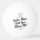 Fråga på ett roligt och oväntat sätt med denna anpassningsbara pingisboll med en förlovningsringdesign och personlig text. Standardmeddelandet lyder "Vill du gifta dig med mig?", men all text kan ändras, vilket gör detta till en lekfull och meningsfull förlovningsidé för både bordtennis-fans och sportälskare.